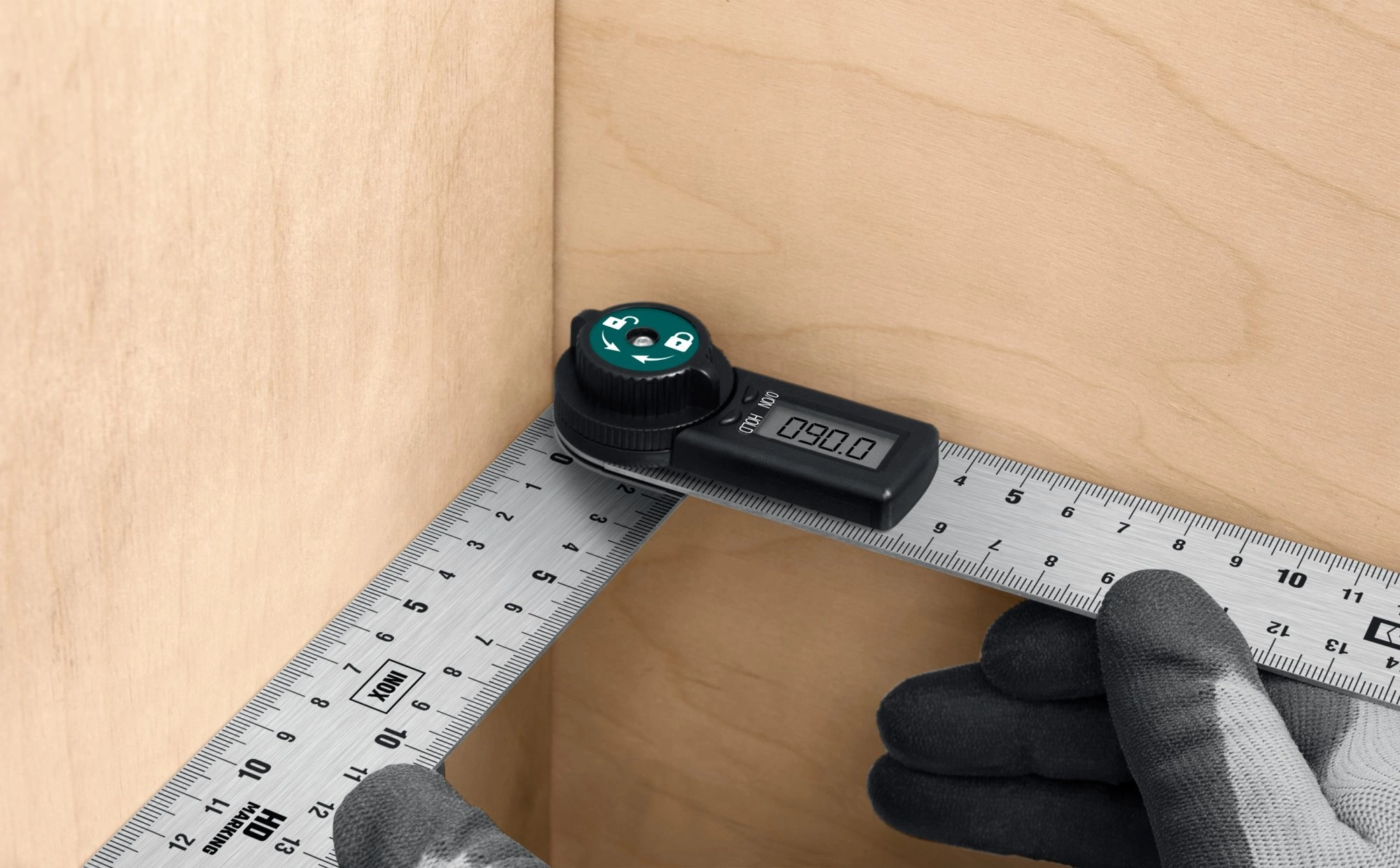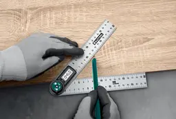• Особенности инструмента двусторонняя разметка, складная конструкция, транспортир