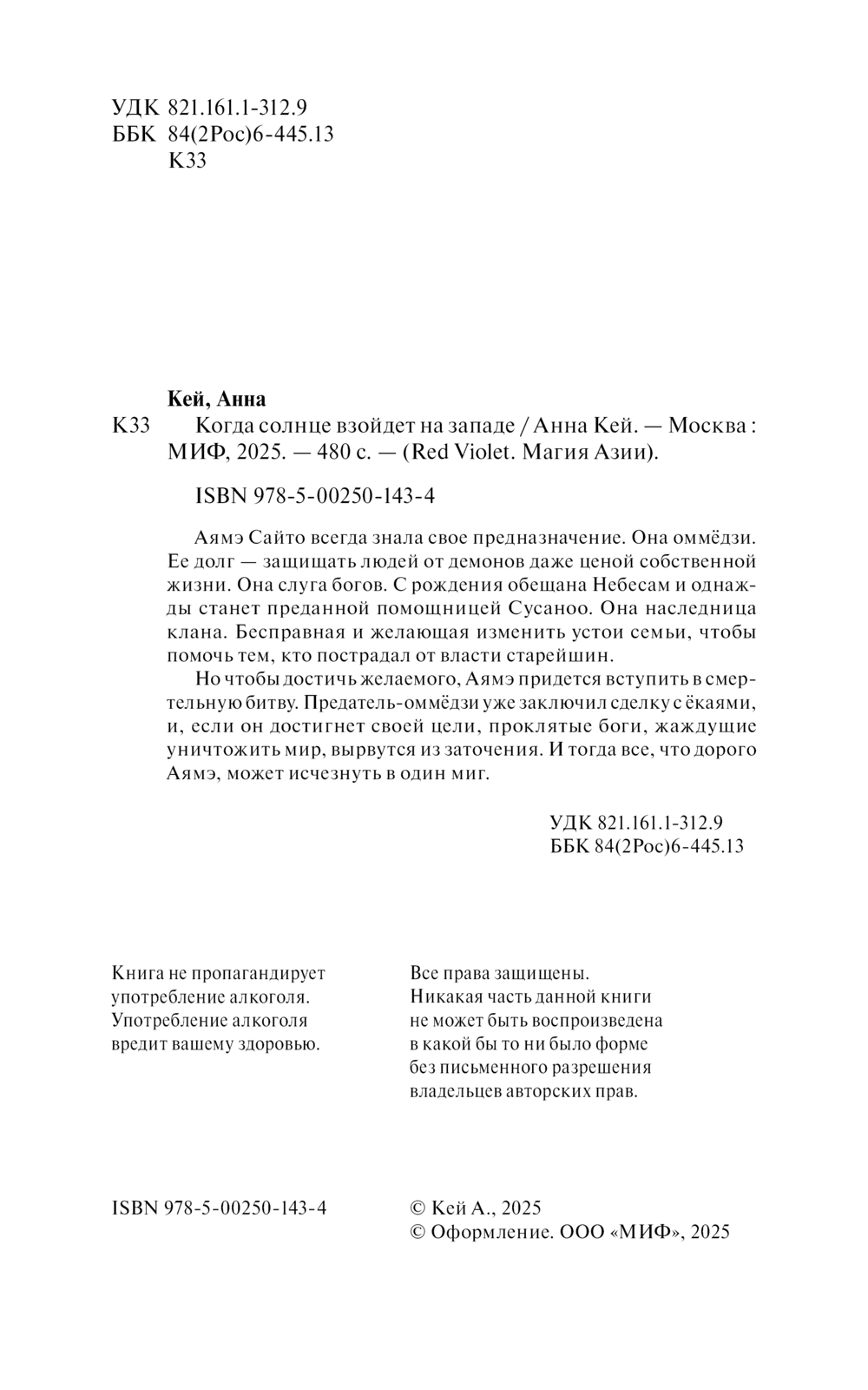 Книга МИФ Когда солнце взойдет на западе, твердая обложка (Кей Анна)