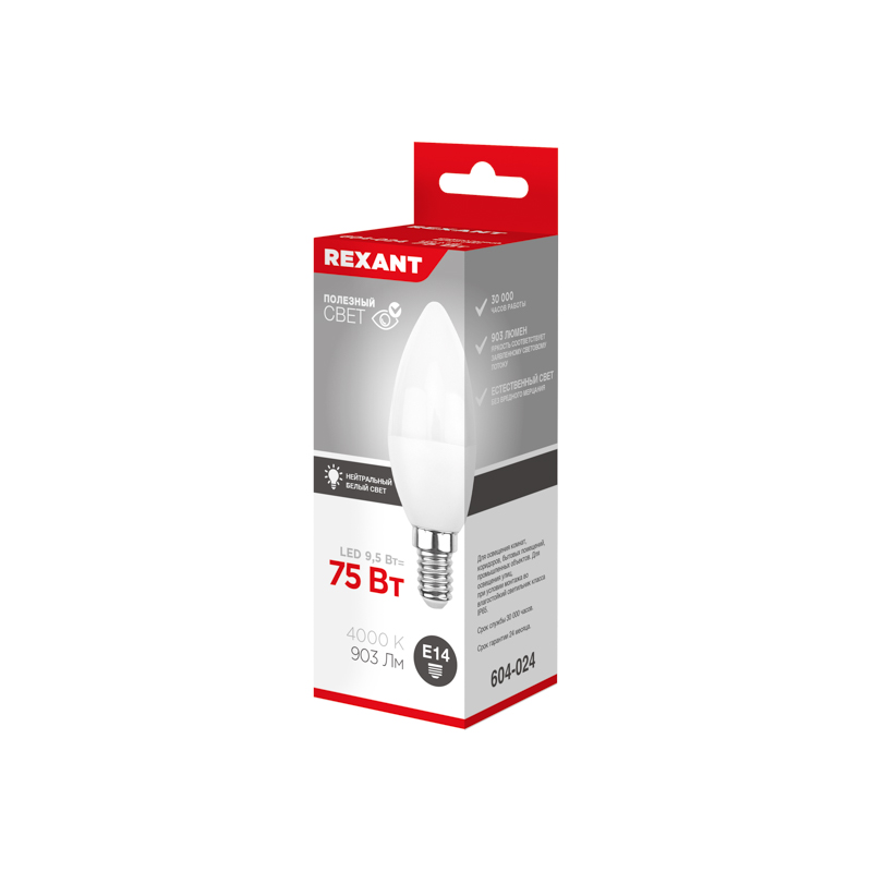 Светодиодные лампы марки REXANT – гарантия применения передовых технологий производства как комплектующих, так и полного цикла автоматизированной сборки и контроля качества изделия на каждом этапе, вплоть до упаковки товара. Один из немногих товаров на рынке, сочетающий цену экономичного сегмента и качественной цветопередачи (Ra>82), наличие электромагнитной совместимиости (EMC), минимальной пульсации свечения (1-5%), гарантийного срока 2 года.Срок службы 30 000 часов, гарантированый световой поток без потери мощности с уровнем светоотдачи болле 90 лм/ватт.Большая гарантия - 2 годаПолная автоматизация производстваУникальное предложение на рынке по параметрам цена/качество/ассортиментное предложениеШирокий диапазон мощностей лампы- ассортимент шарики и свечи 7,5Вт, 9,5Вт, 11,5Вт- свечи на ветру 7,5 Вт цветностью 2700K, 4000K, 6500K- груша А60 9.5Вт, 11,5Вт, 15,5Вт, 20,5Вт, 25,5Вт- лампа рефлектор-спот GU5.3 9,5Вт- лампа рефлектор-спот GX53 10,5Вт 15,5ВтЭлектромагнитная совместимость (ЭМС)Низкая пульсация <5%Высокая цветопередача Ra>82