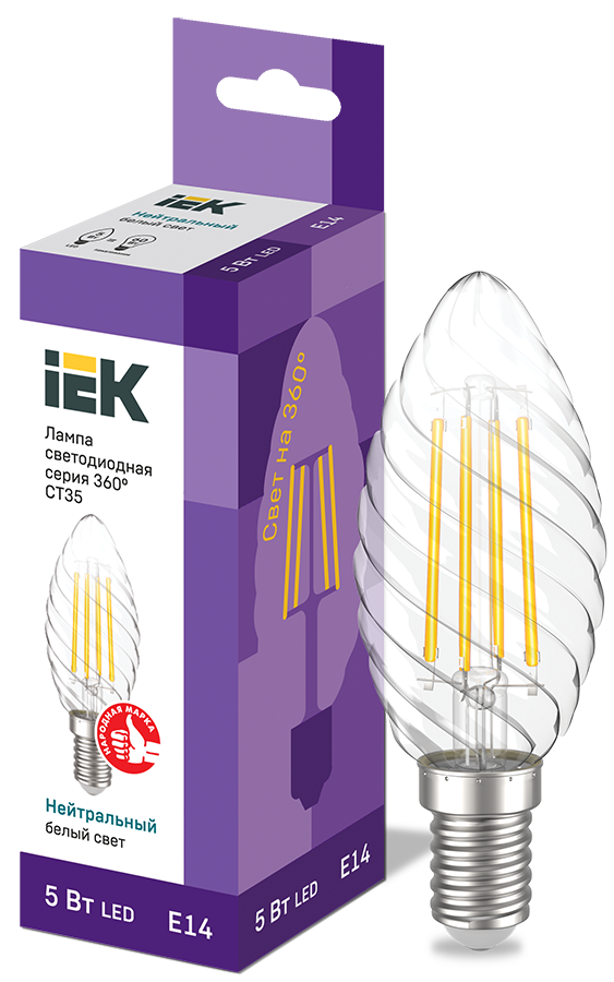 Лампа светодиодная LLF-CT35-5-230-40-E14-CL