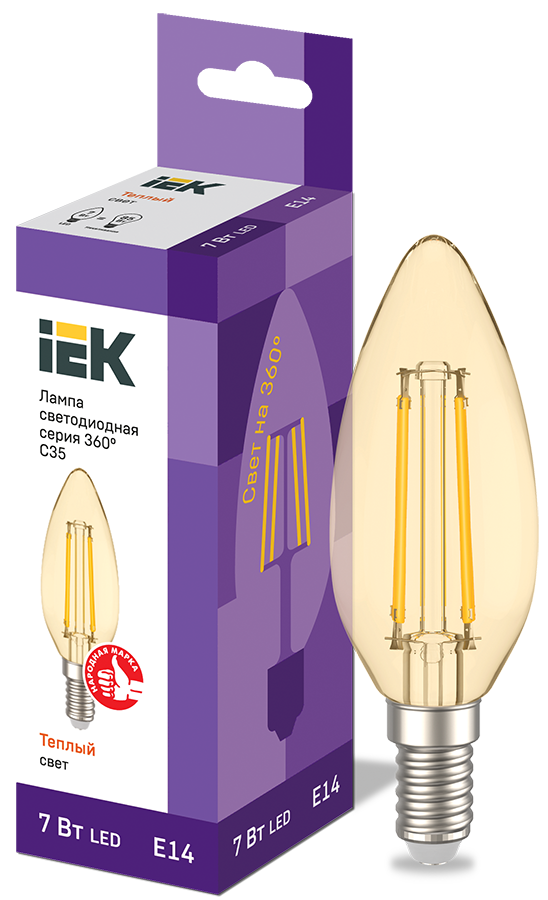 Лампа светодиодная LLF-C35-7-230-30-E14-CLG