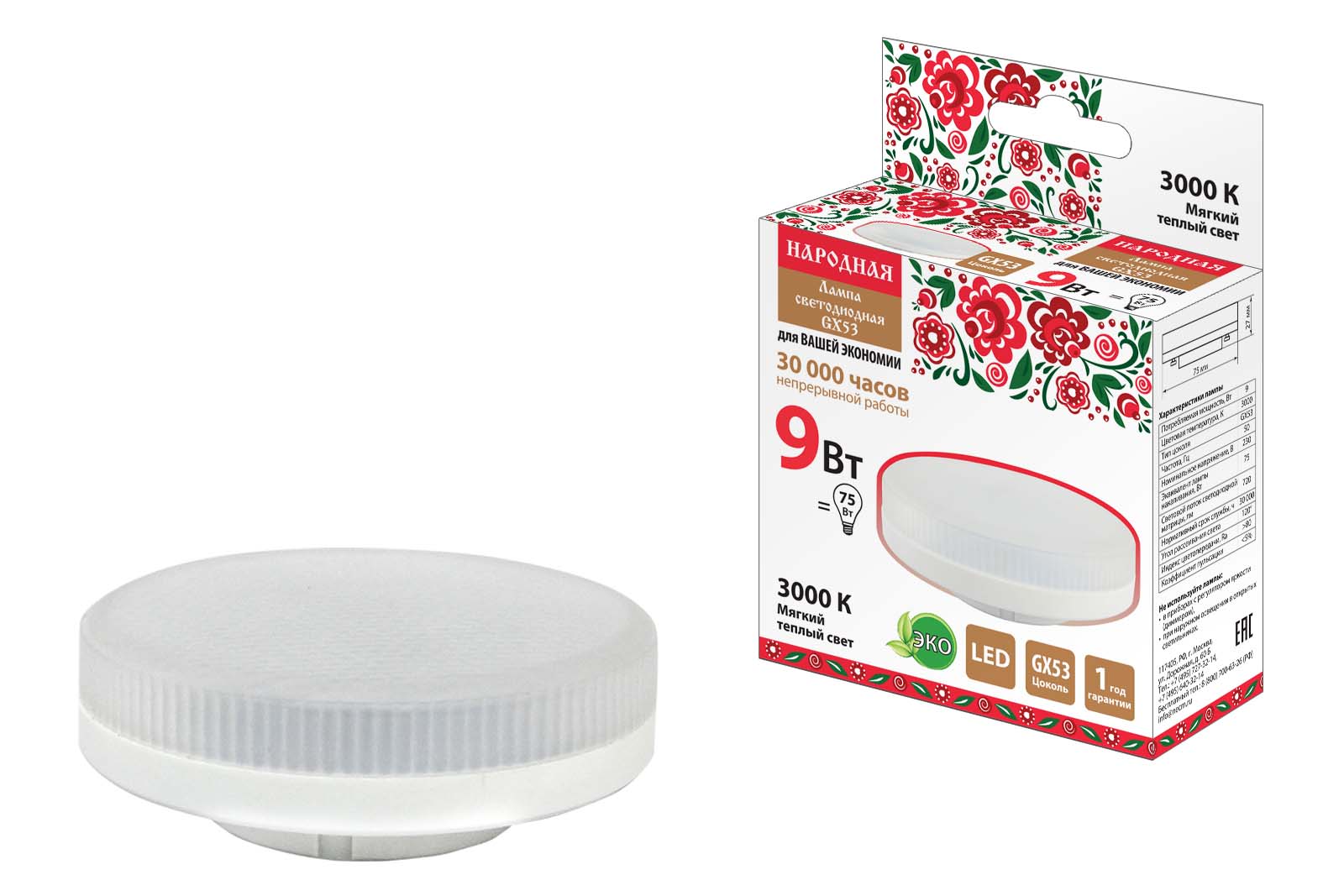 Лампа светодиодная GX53-9 SQ0340-0146