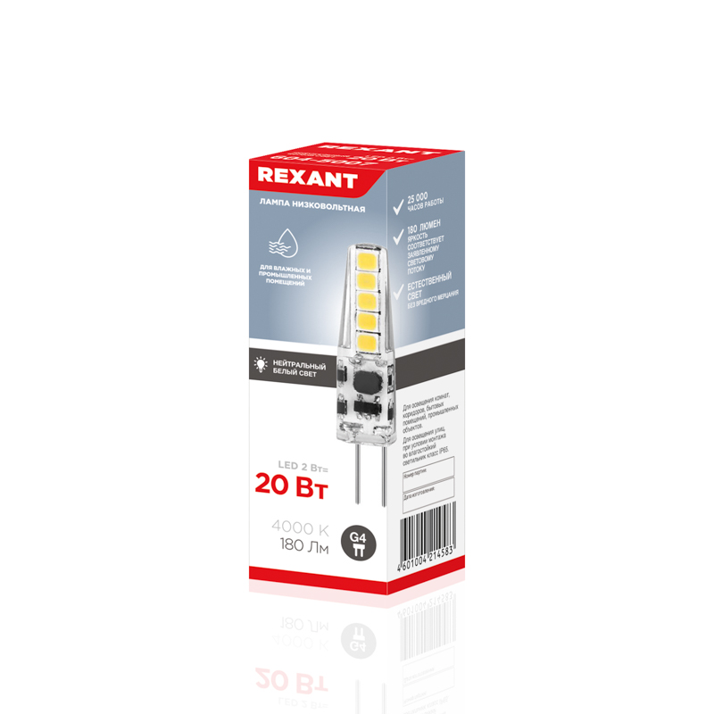 Мощность лампы составляет 2Вт. Цоколь – G4. Цвет свечения – нейтральный.