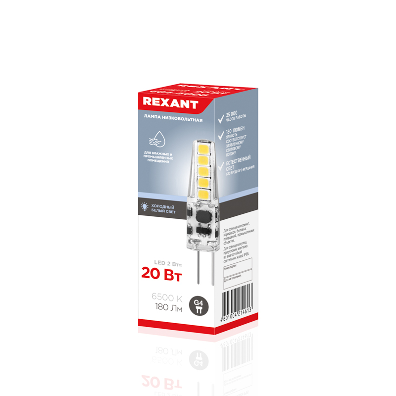 Мощность лампы составляет 2Вт. Цоколь – G4. Цвет свечения – холодный.