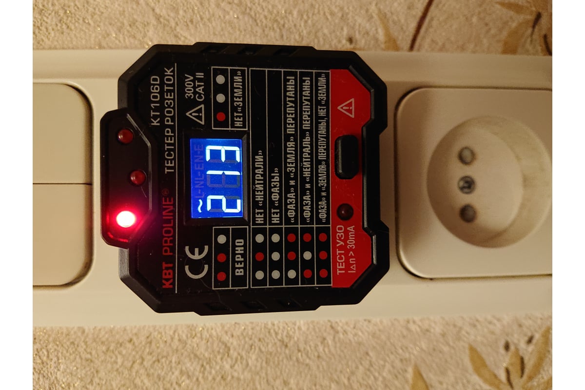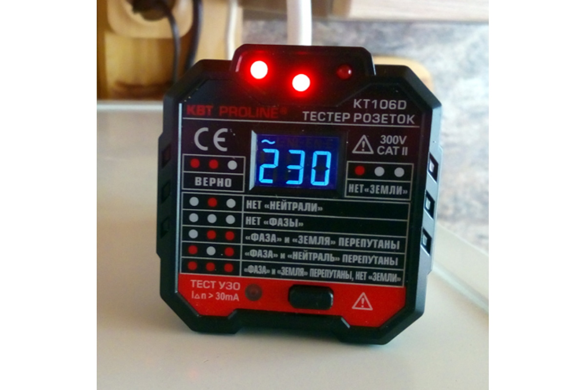 Тестер розеток и УЗО КВТ KT 106D PROLINE 79136