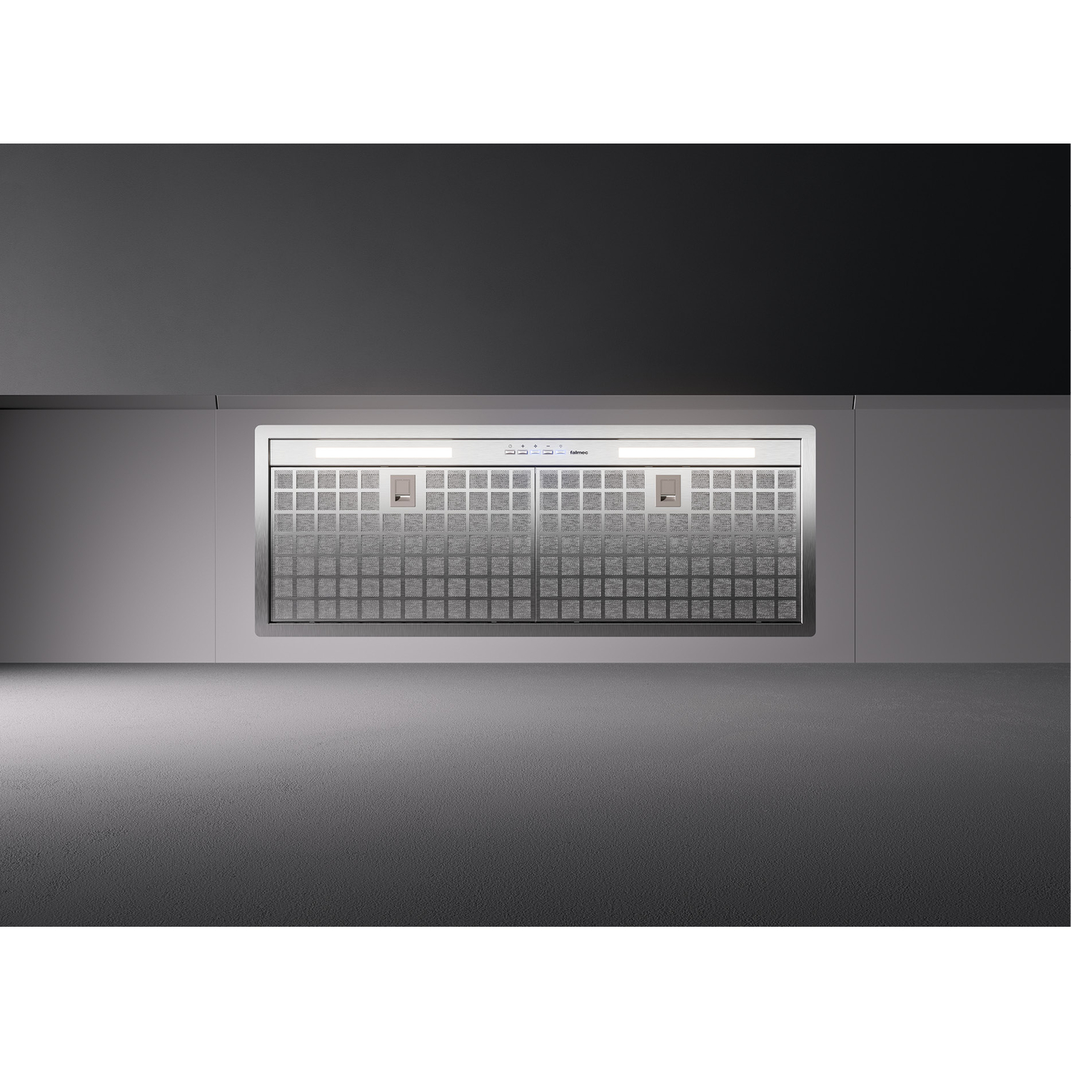 Встраиваемая вытяжка FALMEC GRUPPO INCASSO NRS PLUS 50, серия Silence - NRS, 56 см, электронное/кнопочное управление, пульт ДУ в комплекте, светодиодное освещение Dynamic Led Light, технология бесшумной работы NRS, 4 скорости, отвод/циркуляция, макс. производительность 1280 м3/ч, угольный фильтр (опция), энергоэффективность В, цвет нержавеющая сталь