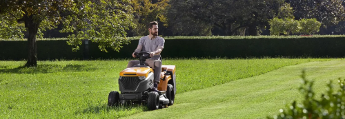 STIGA Estate 384 он оснащен бензиновым двигателем Briggs&Stratton полезной выходной мощностью 5,8 кВт при 2400 об/мин. Данная машина оснащена гидростатическим приводом с педальным управлением, позволяющим плавно регулировать скорость движения вперед без переключения передач. Дека шириной 84 см оснащен двумя ножами и имеет 7 положений высоты кошения в диапазоне от 25 до 80 мм, а также удобную электромагнитную систему сцепления ножей, приводимую в действие кнопкой. Садовый трактор Estate 384 оснащен задним травосборником на 200 литров, а также может использоваться с механизмом мульчирования STIGA Multiclip. Зарядное устройство и вилка для мульчирования STIGA продаются отдельно.