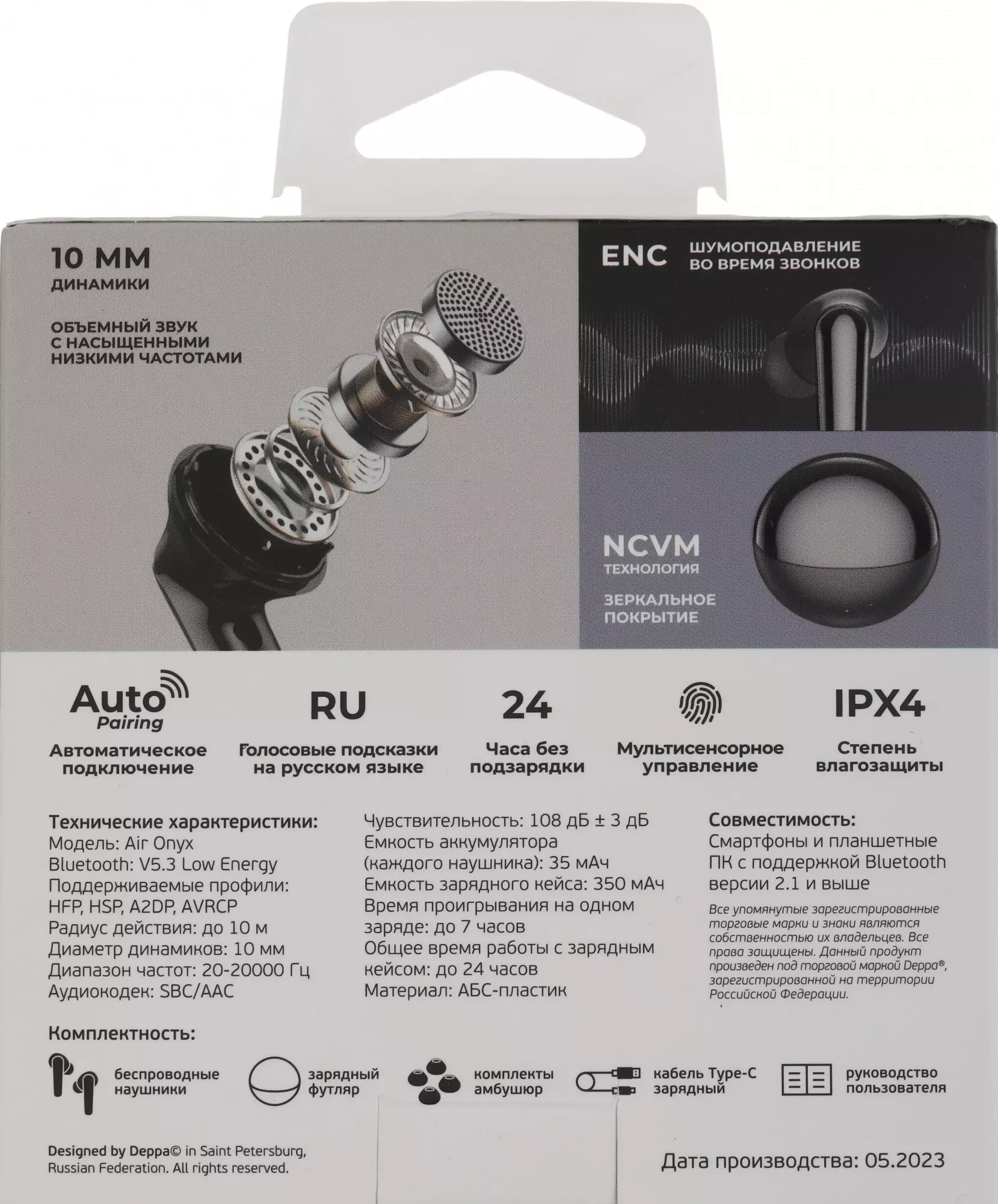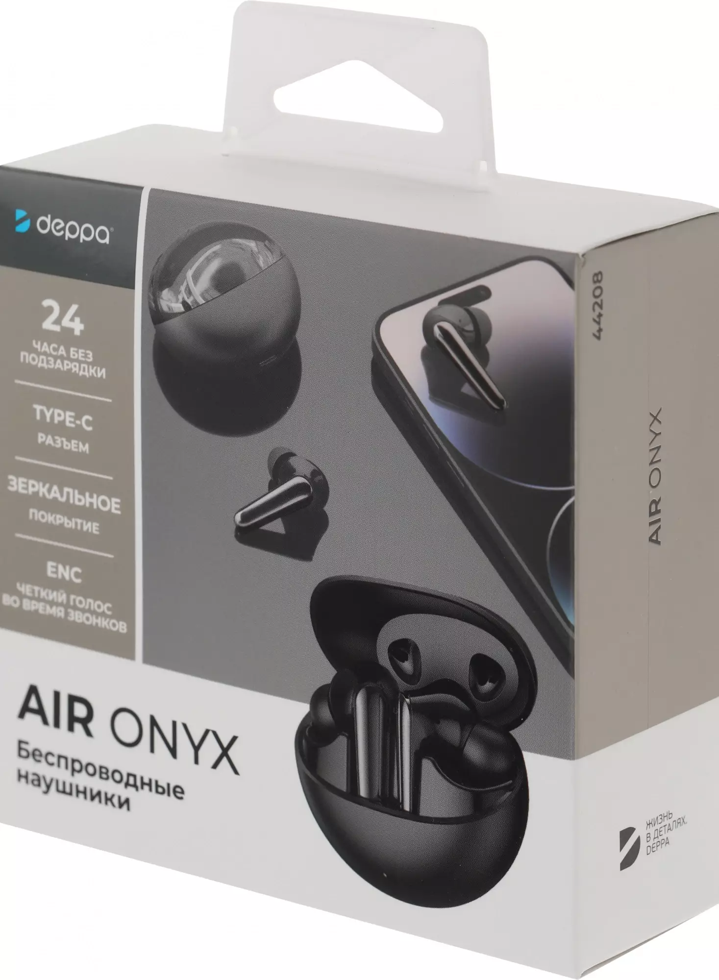 • Описание Беспроводные наушники с микрофоном Air Onyx, TWS, BT 5.3, ENC, 350мАч, черный