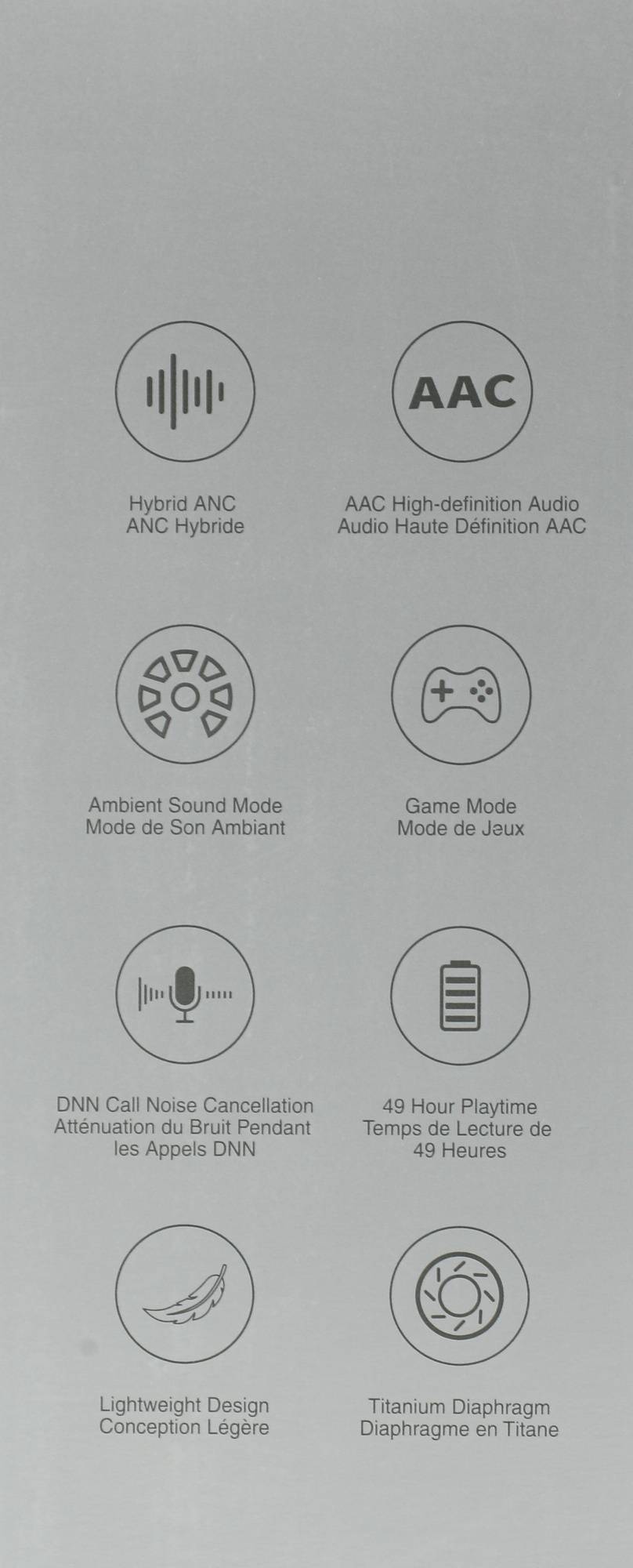 ОсобенностиПоддержка Hi-Res Audio, oблегченная конструкция, игровой режим с задержкой 80 ms, режим управления окружающим звуком, гибридная система активного шумоподавления наушников и микрофона.