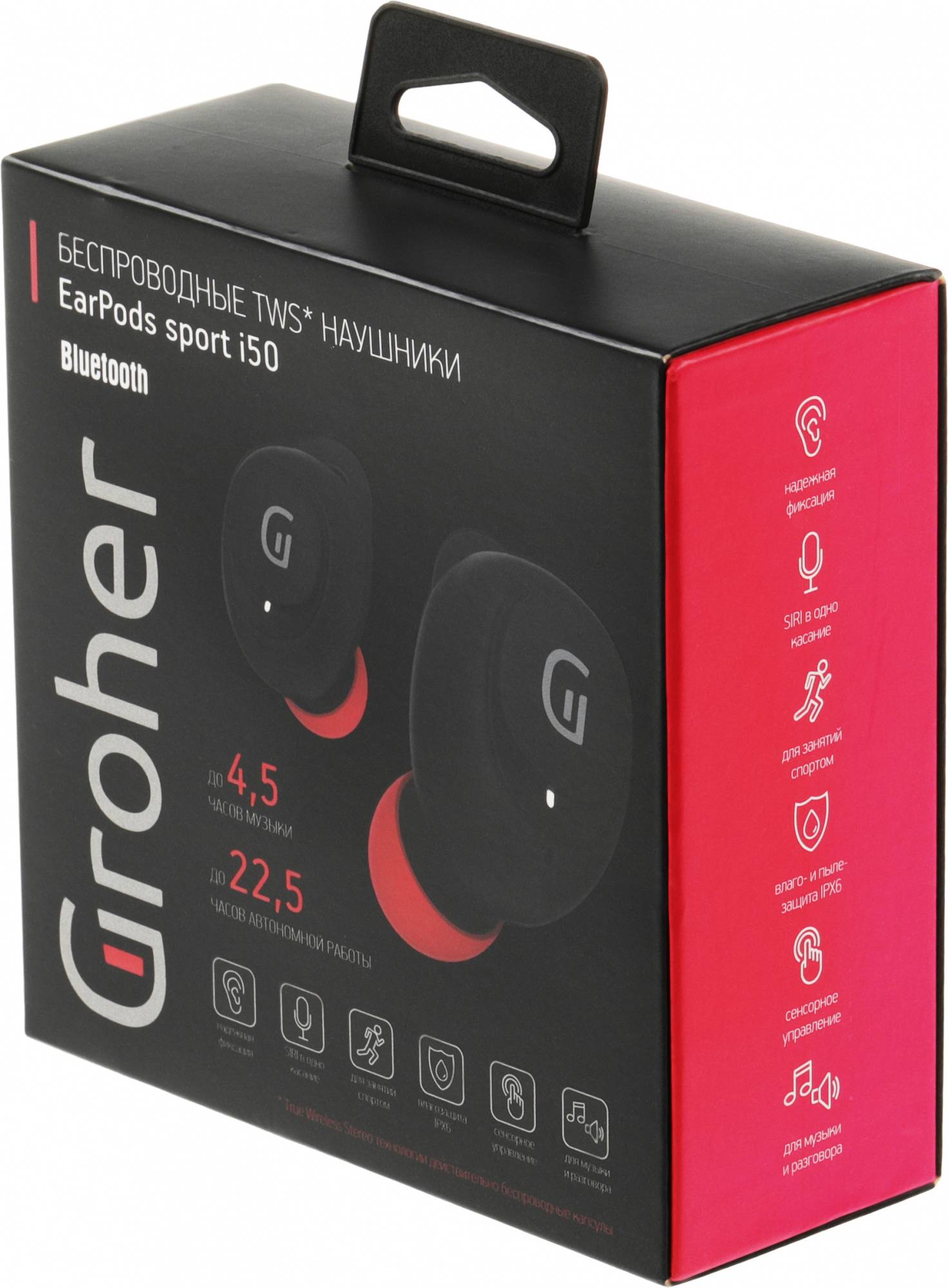 • Описание Беспроводные сенсорные TWS наушники Groher EarPods i50, черный+красный, Groher