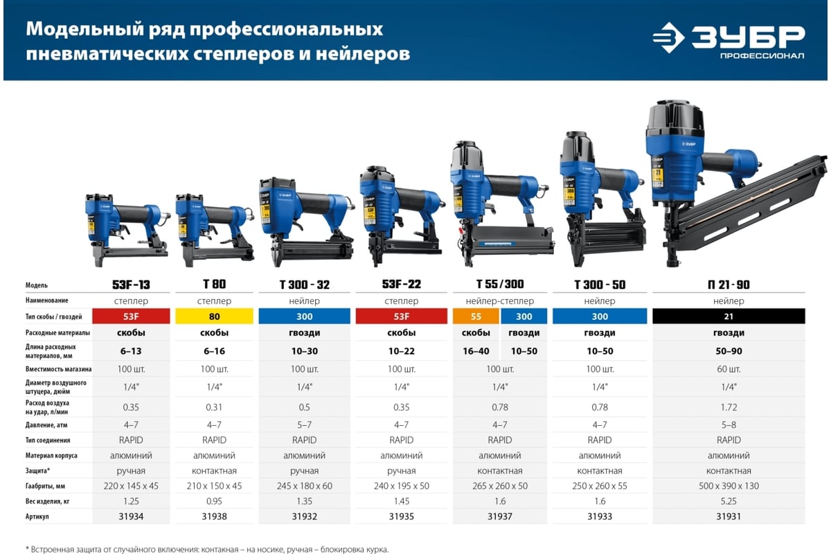 Пневматический нейлер для гвоздей ЗУБР Т300-50 31933