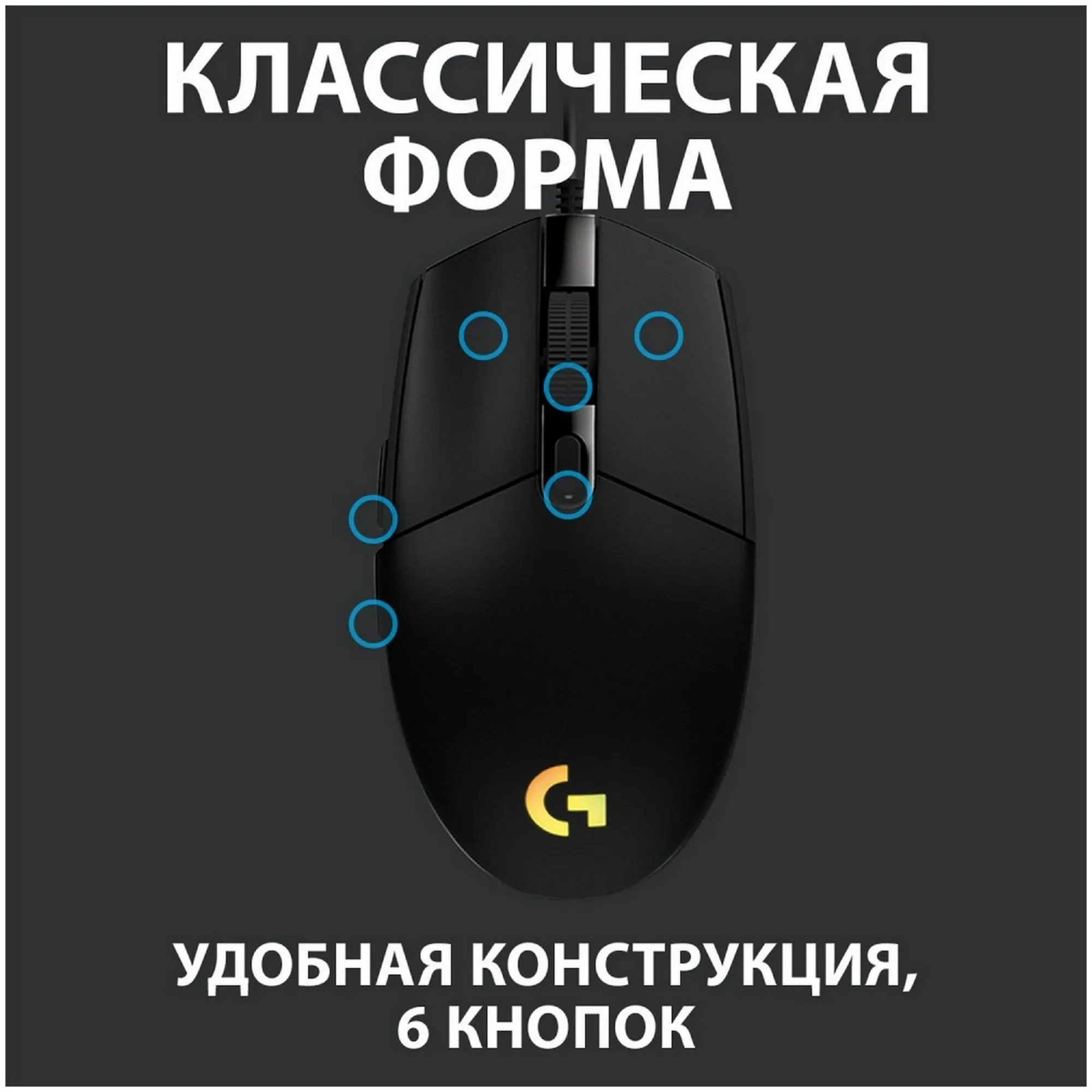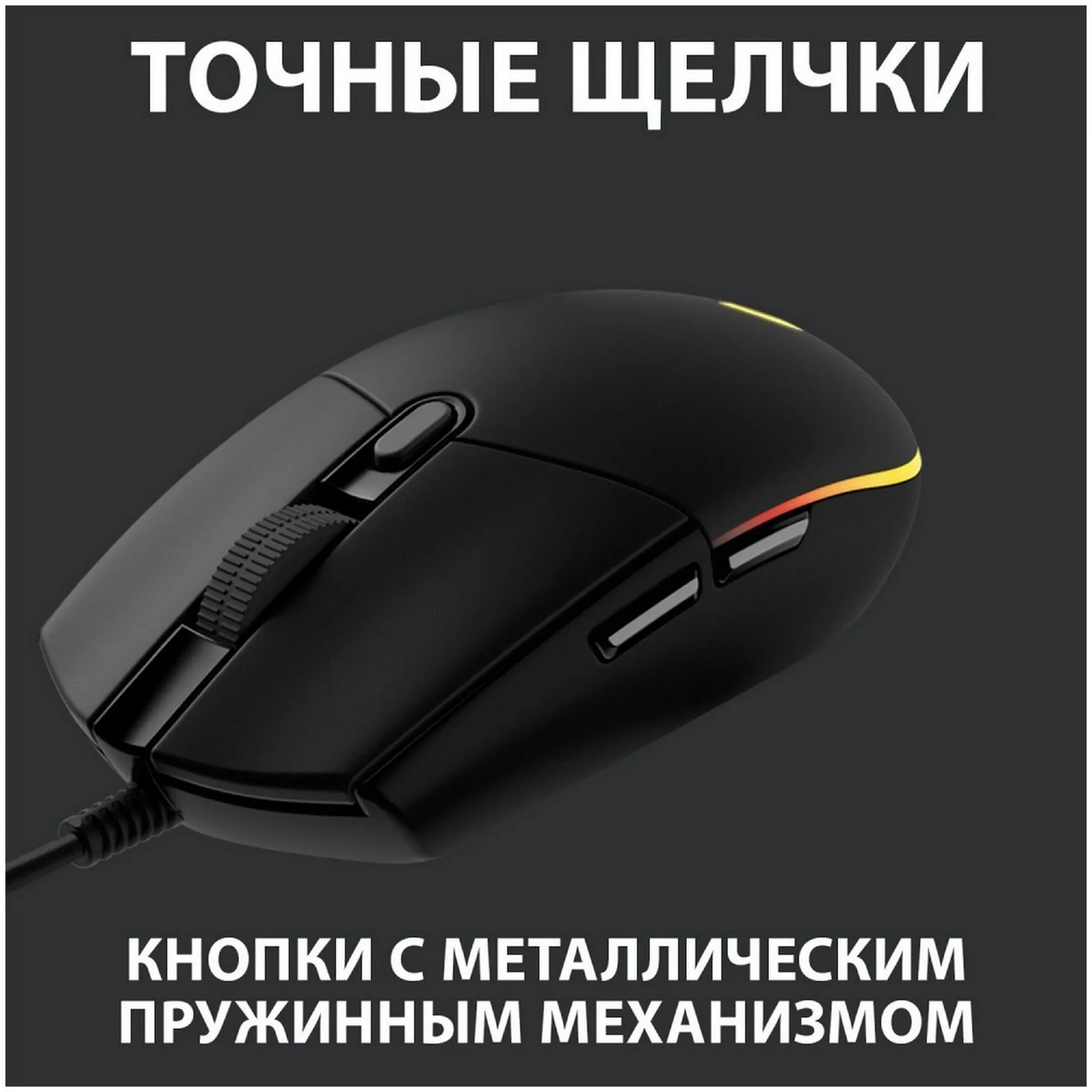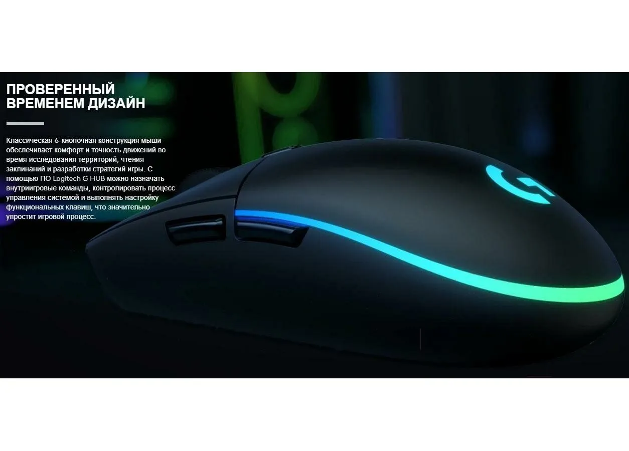 Проводная мышь Logitech 2-го поколения G102 Lightsync создана специально для геймеров, с сенсором 8000 точек на дюйм и яркой подсветкой Lightsync RGB. Датчики профессионального уровня мгновенно реагируют на Ваши движения с максимальной точностью, поэтому Вы можете играть с большей точностью, чем когда-либо. Настройте RGB с помощью холодных цветовых волн, используя более 16.8 миллионов цветов для создания радужных узоров и оптических эффектов. Программируемые кнопки сделаны с прочными металлическими пружинами, обеспечивающими каждый раз четкий щелчок. С Logitech G HUB Вы можете создавать собственные анимации, выбирать цвета и параметры отображения экрана. Вы также сможете отрегулировать настройки чувствительности, выбрав до 5 настроек DPI для наилучшего восприятия. Сенсор игрового уровня: играйте со сверхточным отслеживанием благодаря датчику 8000 точек на дюйм. Переключайтесь между 5 настройками чувствительности и отображением экрана с помощью G HUB. Lightsync RGB: благодаря 16.8 миллионами цветов вся радуга будет у Вас под рукой. Смешивайте цвета и играйте с оптическими световыми эффектами, которые подойдут под любое настроение. Проверенный игрой дизайн: простой дизайн с 6 кнопками дарит классическую игровую форму для полного контроля над игровым процессом. Упростите задачи с помощью программируемых кнопок. Клавиши с пружинным механизмом: механические кнопки с прочными металлическими пружинами. Четкие щелчки дают Вам точную обратную связь для повышения точности и ощущения. Пользовательские настройки: совместима с игровым программным обеспечением Logitech G Hub, теперь Вы можете менять настройки. Установите DPI от 200 до 8000 для большей точности для легких и быстрых игр. Объединяется с Logitech Gear: создавайте персональные игровые возможности с помощью этой проводной мыши для ноутбуков, Mac, ПК и компьютеров, которая совместима со всем оборудованием Logitech G.