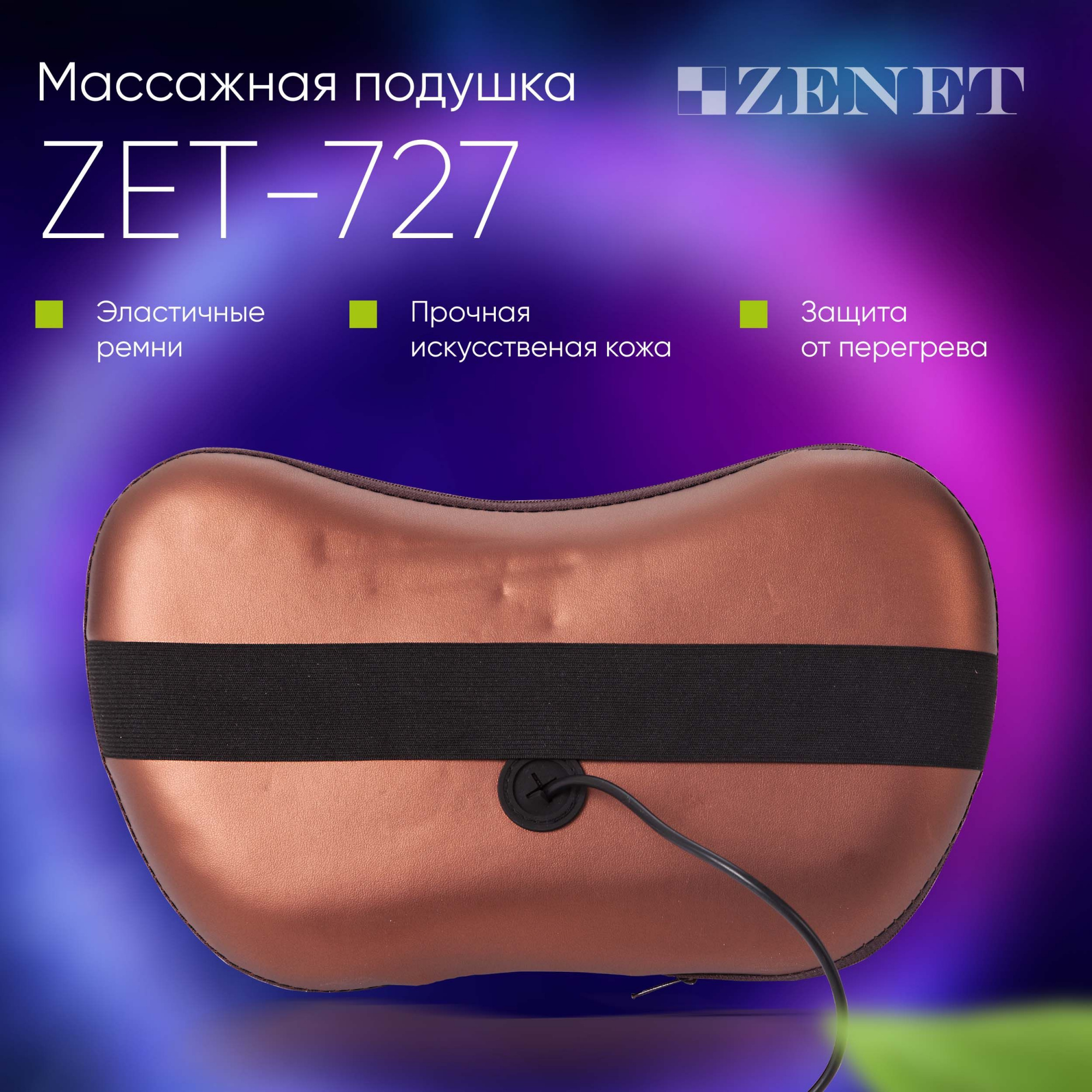 Массажная подушка Zenet ZET-727 25Вт коричневый