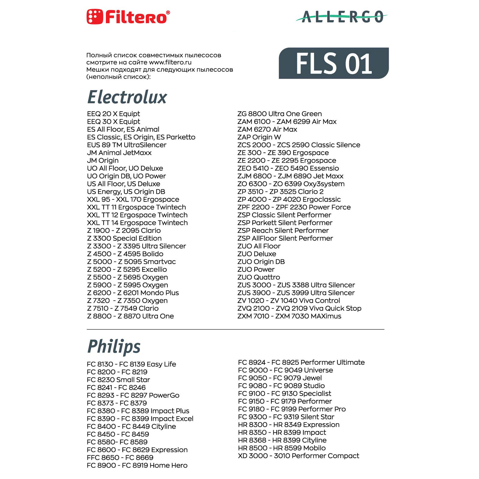 Пылесборники Filtero FLS 01 (S-bag) (4) Allergo 4шт
