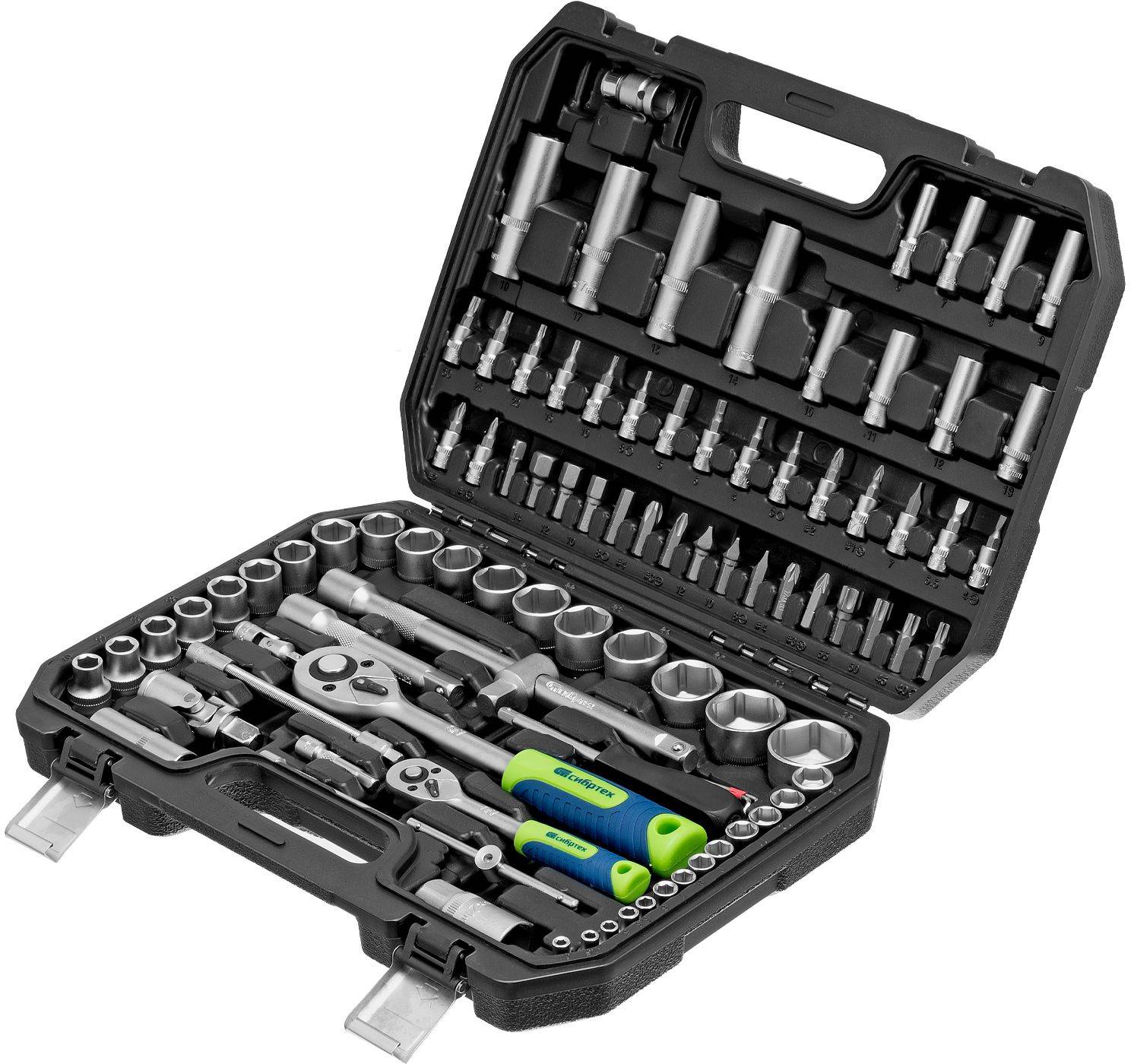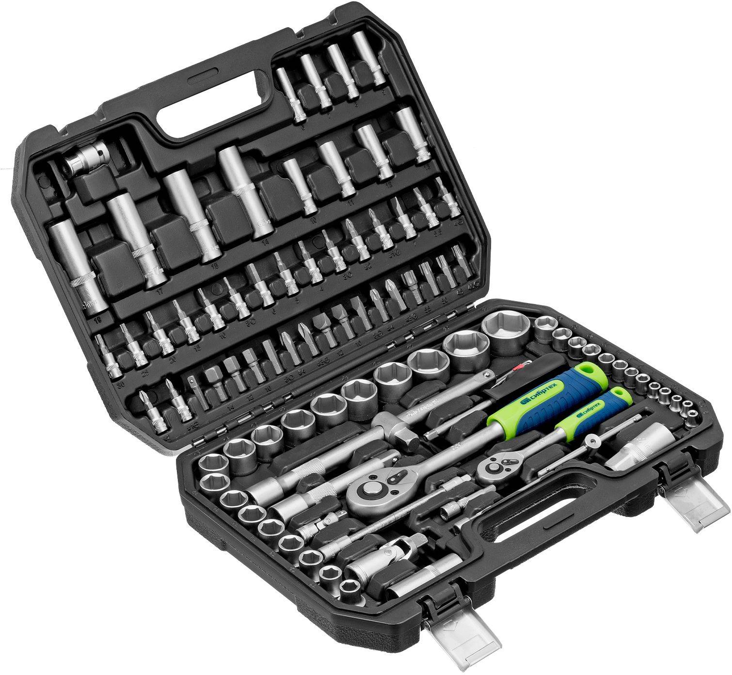 ОписаниеНабор инструментов Сибртех 13388 упакован в пластиковый кейс и состоит из 94 предметов с присоединительным размером 1/2" и 1/4", предназначенных для монтажа и демонтажа резьбового крепежа с разными типами шлицев.
