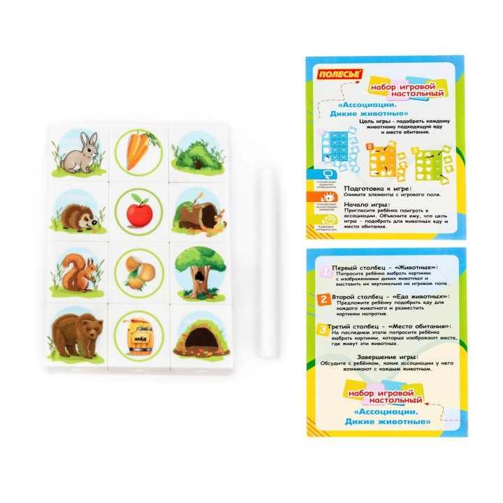 Набор игровой настольный Полесье «Ассоциации. Дикие животные», 12 элементов, в пакете
