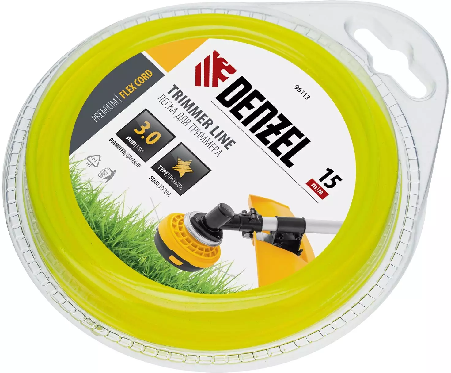• Описание Леска для триммера, звезда 3 мм х 15 м, блистер Flex cord DENZEL 96113