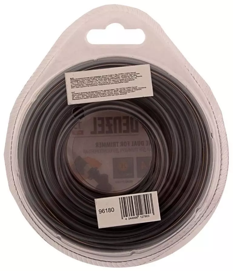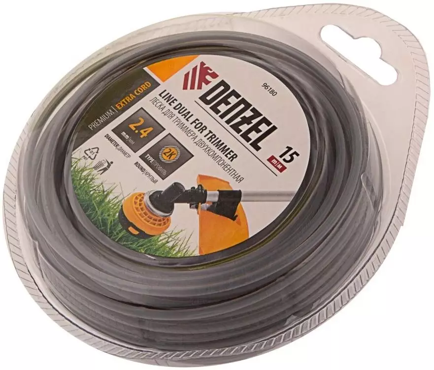 • Описание Двухслойная леска Denzel EXTRA CORD 2,4 мм х 15 м подходит для оснащения электро- и бензотриммеров.