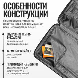 • Особенности конструкции внутренние ремни-фиксаторы, карман-органайзер, перегородка на молнии