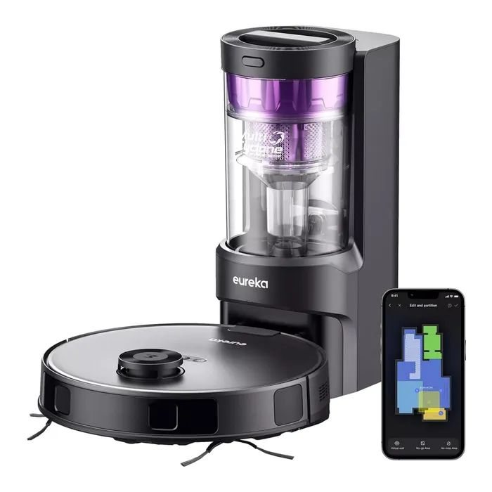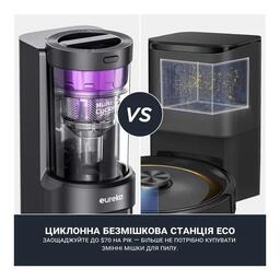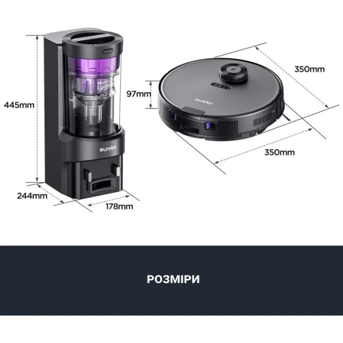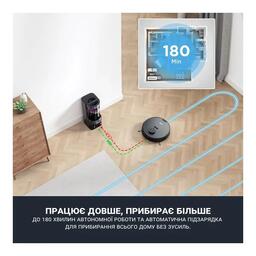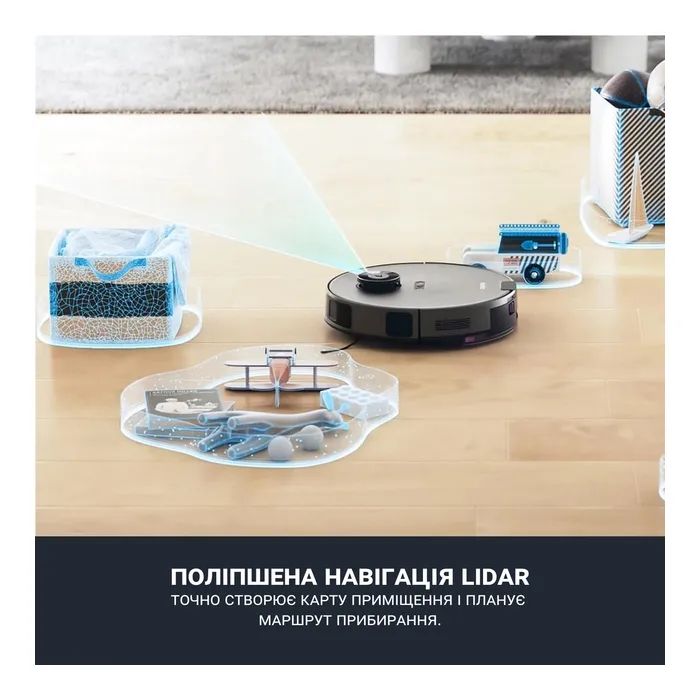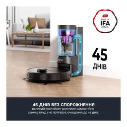 Функціївибір режиму руху , лазерні датчики , продовження прибирання після підзарядки , система антизаплутування у проводах , станція автовивантаження сміття