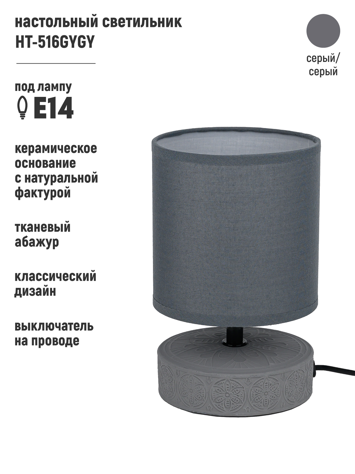 Прикроватная лампа ArtStyle HT-516GYGY (серый/серый)