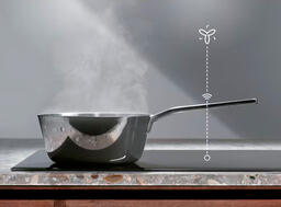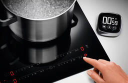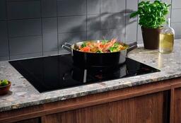 Варочная панель работает на индукционном нагреве — это значит, что повышается температура непосредственно посуды, в которой готовится блюдо. Таким образом промежуточная ступень с предварительным нагревом конфорки пропускается — сокращается время, повышается безопасность. Количество конфорок в этой модели: 4.