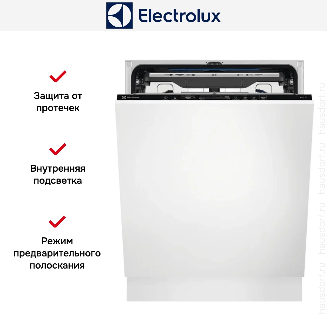 Встраиваемая модель Электролюкс отлично впишется в любой интерьер, главное — правильно выбрать место, чтобы подвести коммуникации. Устанавливается в нишу целиком, полностью закрывается декоративной панелью. Обратите внимание: в комплекте не идет фасад, его необходимо установить самостоятельно. Имеет стандартные размеры, поэтому может не поместиться на очень маленькой кухне. В камеру можно загрузить ограниченное число комплектов. Комплектом считается набор посуды на одного человека, который нужен для полноценного приема пищи: глубокая и плоская тарелки, тарелка для салата, блюдце под чашку, сама чашка, ложка и вилка.