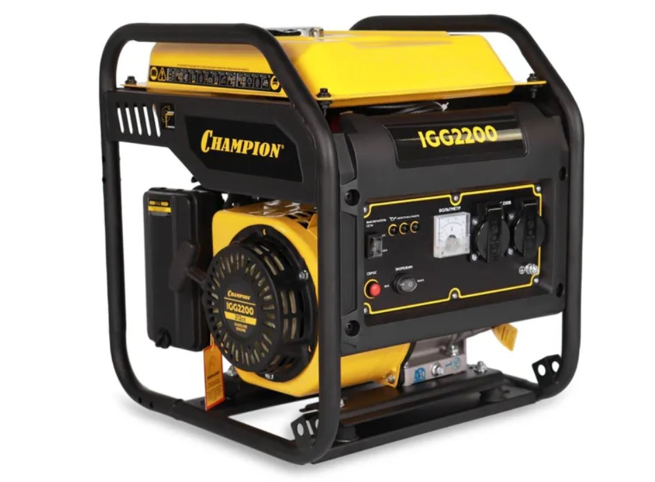 Champion IGG2200 - мобильная инверторная электростанция номинальной мощностью 2000 Вт. Она имеет открытое исполнение, что существенно упрощает ее осмотр, обслуживание и ремонт. При помощи прочной металлической рамы этот агрегат может транспортироваться при помощи разнообразной грузоподъемной техники.