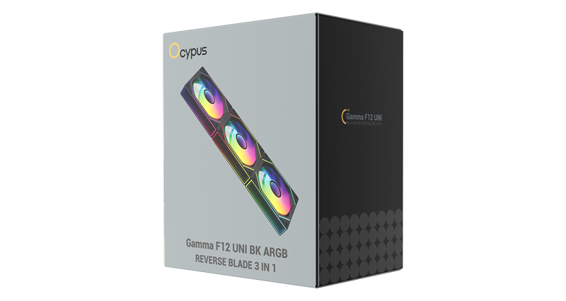 Ocypus Gamma F12 UNI BK ARGB REVERSE BLADE 3 IN 1, 3x120x120x25mm, 4-PIN PWM, 800-1800 RPM, 31 DBA MAX, HYDRO BEARING