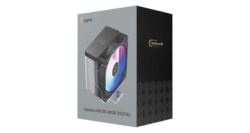 Ocypus Gamma A40 BK ARGB Digital, 100mm ARGB FAN, Top Display Panel, 4 HEAT PIPES, 4-PIN PWM, 600-2400 RPM, 29.5DBA, HYDRO BEARING, LGA115X/1200/1700/18XX, AM4/AM5