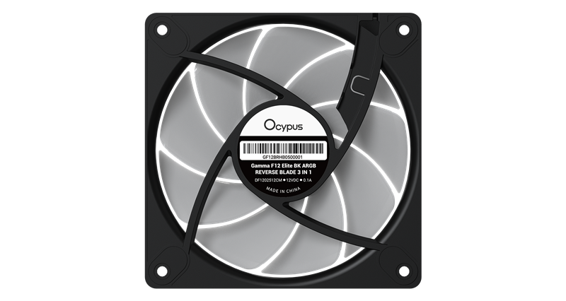Ocypus Gamma F12 Elite BK ARGB REVERSE BLADE 3 IN 1, 120x120x25mm, 4-PIN PWM, 600-1800 RPM, 26 DBA MAX, HYDRO BEARING