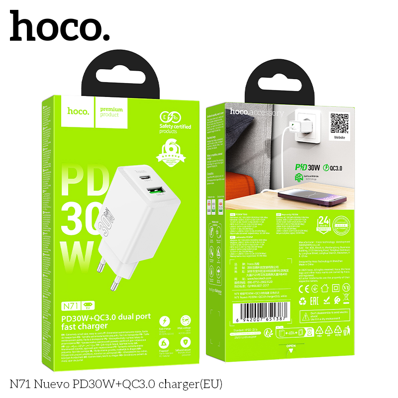 СЗУ HOCO N71 Nuevo PD30W+QC3.0 белый