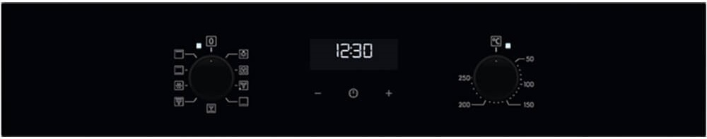 Особенности дизайна и внешней панели управления — также важный пункт при выборе духовки на кухню. В данной модели нужно обратить внимание на цвет — черный, Электронная панель управления позволяет быстро разобраться в настройке программ и не требует чрезмерных усилий.