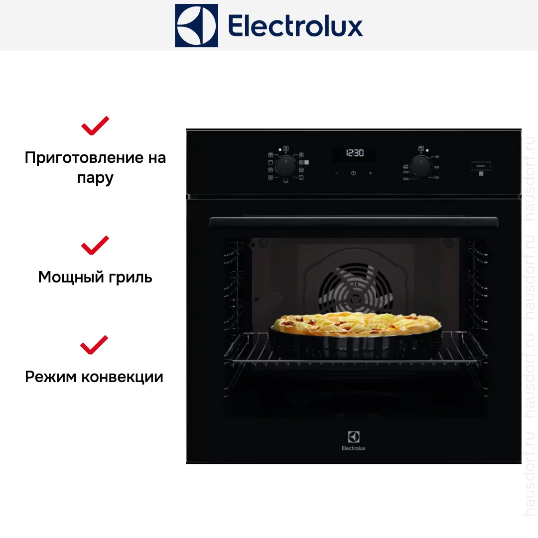 Готовьте свои лучшие блюда и пробуйте новые рецепты с духовым шкафом Electrolux EOD5F71Z! Стандартные размеры и большой объем внутренней камеры — выбор тех, кто много готовит для семьи или частых праздничных встреч с друзьями. Желательно заранее продумать расположение такой модели в кухонном гарнитуре.