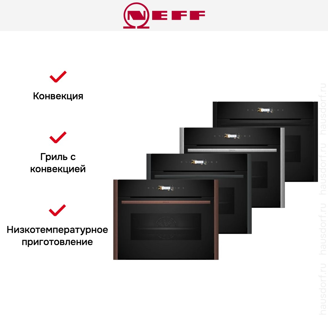 Готовьте свои лучшие блюда и пробуйте новые рецепты с духовым шкафом Neff C29CR7KY0! Стандартные размеры и большой объем внутренней камеры — выбор тех, кто много готовит для семьи или частых праздничных встреч с друзьями. Желательно заранее продумать расположение такой модели в кухонном гарнитуре.