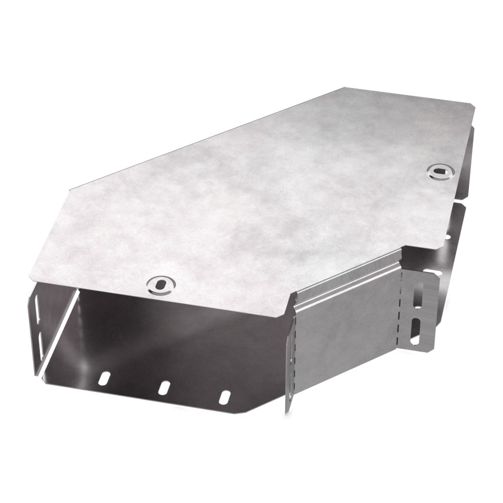 Аксессуары изготовленные из стали с защитным покрытием по методу Сендзимира – это изделия, на которых защитное цинковое покрытие было нанесено на листовую сталь перед изготовлением. Толщина защитного покрытия варьируется от 10 до 22мкм. Климатическое исполнение изделий УХЛ2, что предусматривают эксплуатацию в помещении и под навесом, при температуре эксплуатации от -80 до +150°С. Угол горизонтальный 90 градусов предназначен для поворота кабельных трасс в горизонтальном направлении на 90 градусов, для перфорированных и глухих лотков. В комплект входит крышка.
