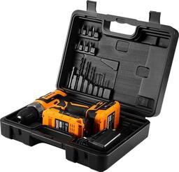 • Комплектация - Дрель-шуруповерт - 1 шт.- Аккумулятор 3,0 Ач - 2 шт.- Зарядное устройство - 1 шт.- Биты - 6 шт.- Сверла - 6 шт.- Держатель бит - 1 шт.- Инструкция- Кейс