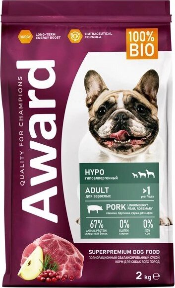Сухой корм для собак Award Adult Hypo со свининой с добавлением брусники / 2543554