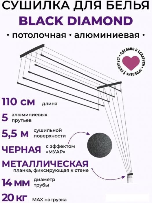 Сушилка для белья Comfort Alumin Group Потолочная 5 прутьев Black Diamond 110 см (алюминий)