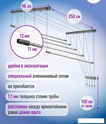 Сушилка для белья Comfort Alumin Group Потолочная 5 прутьев Silver Style 250 см (алюминий)