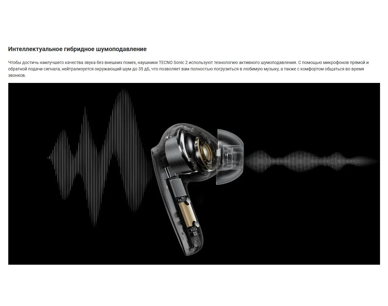 В наличии 2 610 руб. Наушники Tecno SC02 White