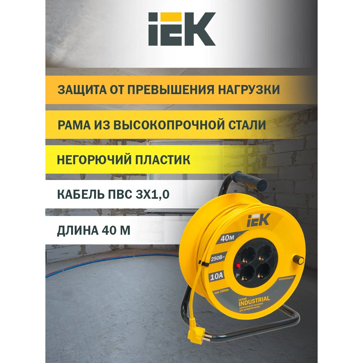 Катушка IEK WKP10-10-04-40-G УК40 с т/з 4 места 2P+PE/40м 3х1,0мм2 Generica