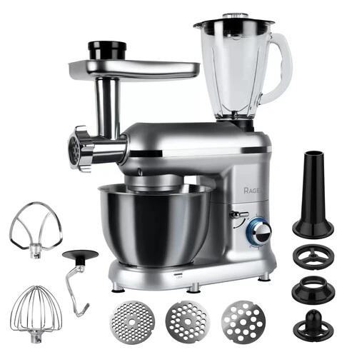 Данный кухонный комбайн заменяет собой 3 прибора благодаря таким сменным насадкам, как мясорубка, блендер, планетарный миксер. Ножки-присоски, низкий уровень шума и мощность в 1500 Вт делают этого трудягу важным обитателем кухни.