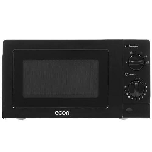 Панель управления в Econ ECO-2031M представлена поворотными переключателями, обеспечивающими молниеносный доступ к режимам и функции таймера. За быстрое и удобное открытие навесной дверцы отвечает кнопка в основании микроволновой печи. Гарантом устойчивости прибора на поверхности станут прочные ножки в основании.