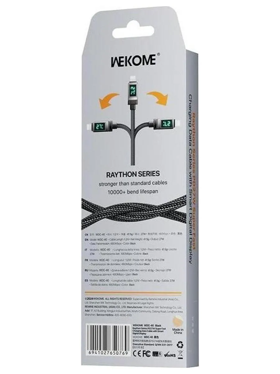 Описание товара Кабель для мобильных устройств Wekome Type-C to Apple Lightning PD27W WDC-40