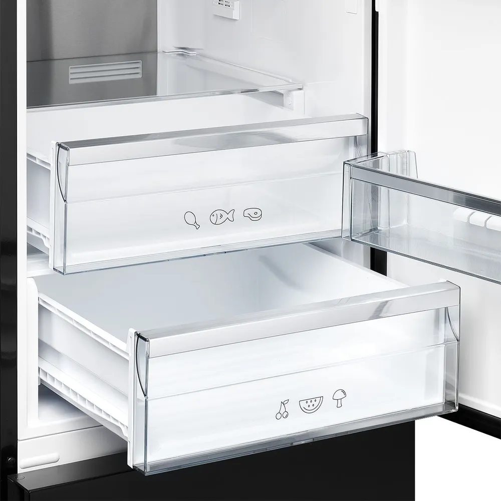 Этот отдельностоящий двухкамерный прибор обладает современным дизайном и элегантным черным цветом, что позволяет ему гармонично вписываться в любой интерьер.