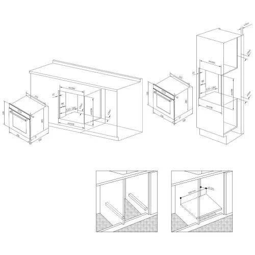 • Комплектация - Глубокий противень (40 мм, эмалированная сталь) - Хромированная решётка - Универсальный противень (20 мм, эмалированная сталь) - Корзина для Air Fry - Вертел и хромированная рамка для вертела - 2 винта для крепления духового шкафа - Инструкция - Схема монтажа