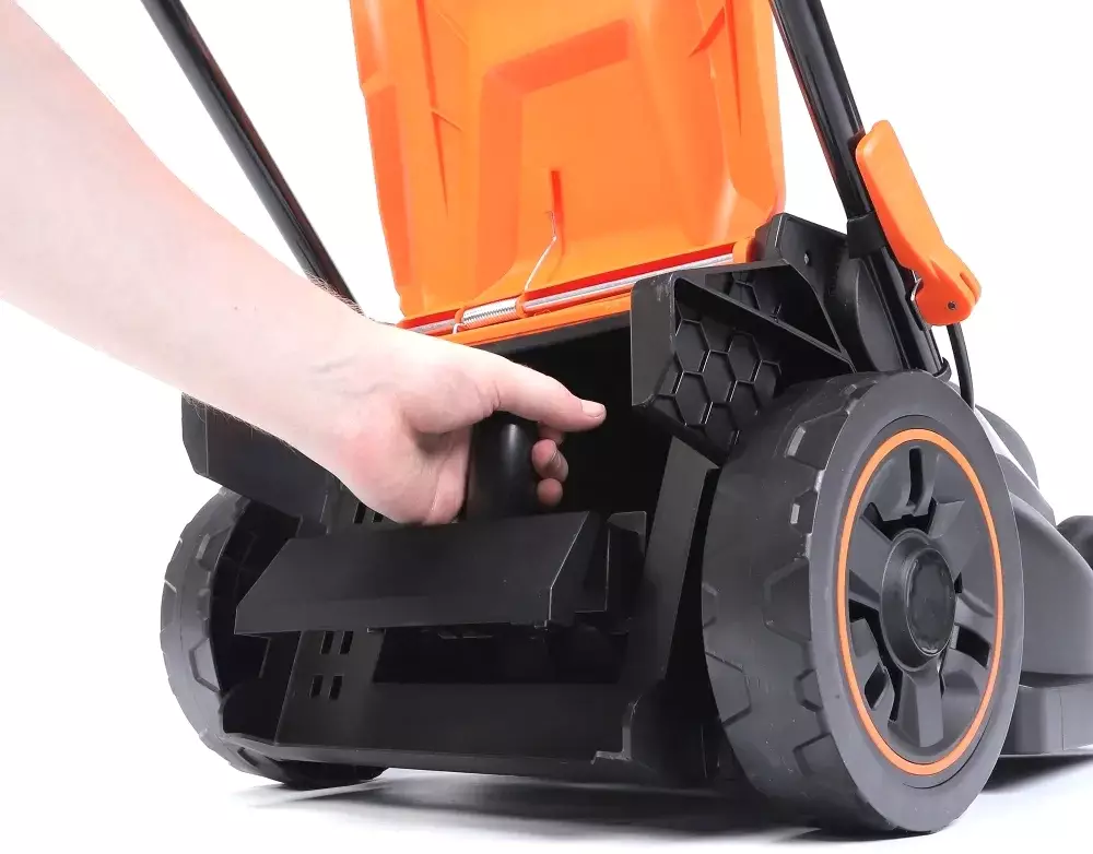 • Комплект поставки Машина с верхней ручкой, Ручка для переноски травосборника, Травосборник, Быстросъемный фиксатор: 2 шт., Зажимы: 2 шт., Держатель кабеля: 2 шт., Кабельный крюк, Нижняя часть рукоятки, Мульчирующая заглушка, Инструкция