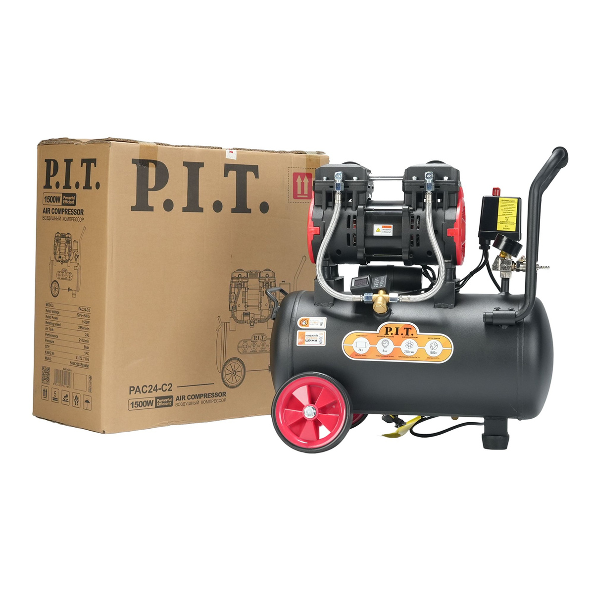 Компрессор безмасляный P.I.T. PAC24-C2 1,5кВт 210л мин 8бар 24л 2цил 2 вых