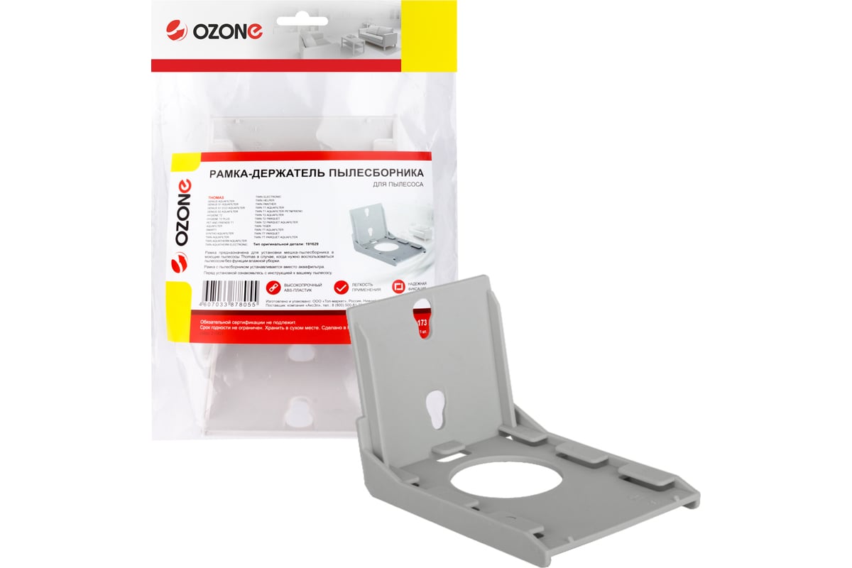 Рамка-держатель пылесборника для пылесоса OZONE FH-173 изготовлена из высокопрочного ABS-пластика. Предназначена для установки мешка в моющие пылесосы Thomas в режиме сухой уборки.